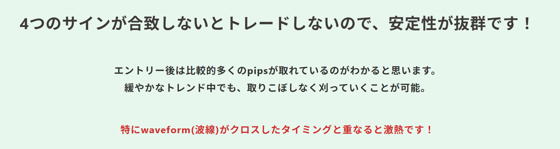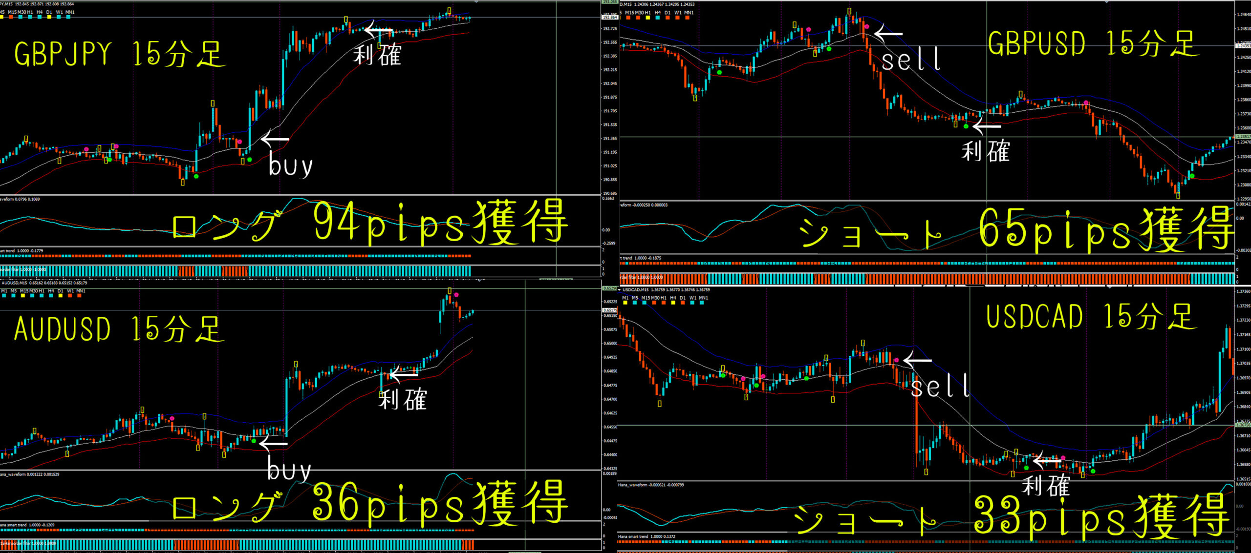 半信半疑でしたが、先日ポンド円でサイン通りにエントリーし、自動利確EAに任せていたところ、気づいたら+92pipsで決済されていました。4つのフィルターが揃う場面は多くありませんが、だからこそサインが出た時の信頼感がすごいです。